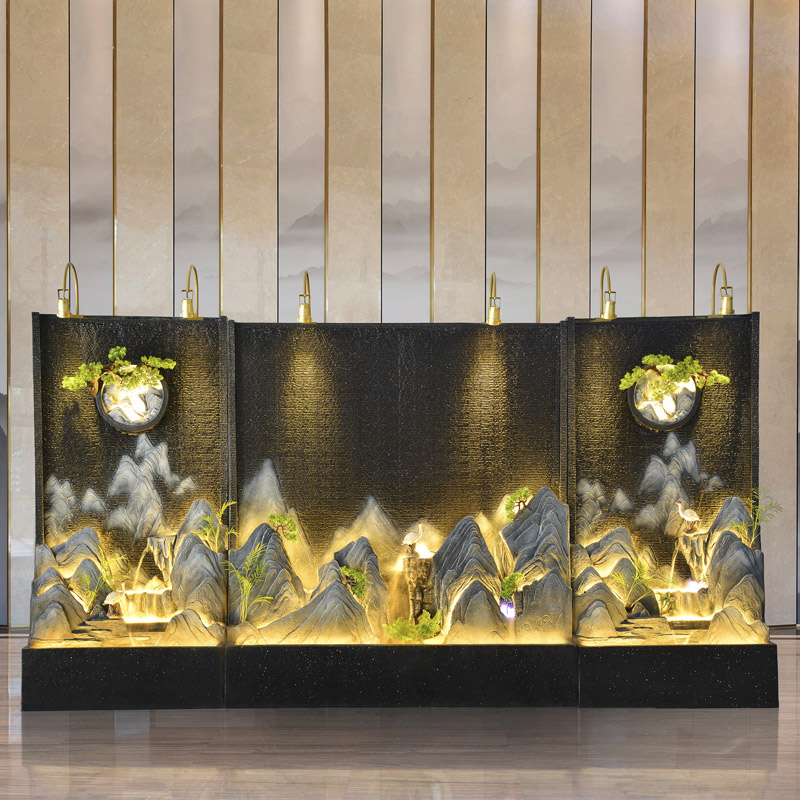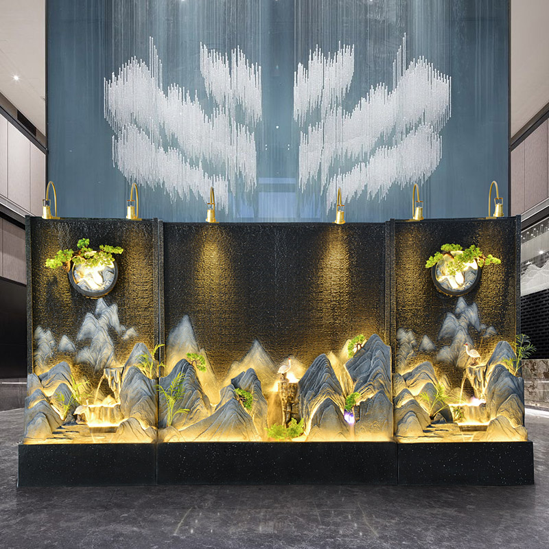 Large water curtain wall Water screen Indoor living room entrance Hotel company rockery landscape fountain background wall ornaments