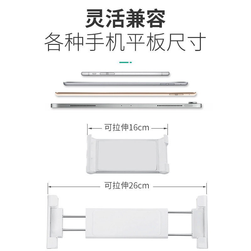 Standard collet black (supports 5-11 inch phone flat) Standard collet silver color (supports 5-11 inch phone flat) Standard clamping head black with wall-hanging (supporting 5-11-inch phone