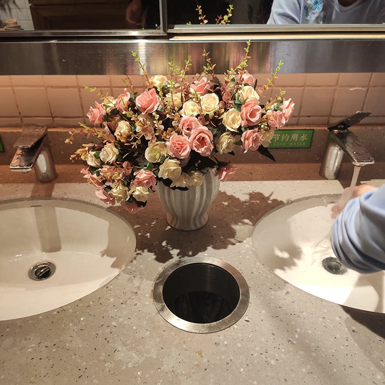 Stainless steel embedded trash can lid bathroom marble table hollowed out straight throw decorative cover barbecue table lift cover