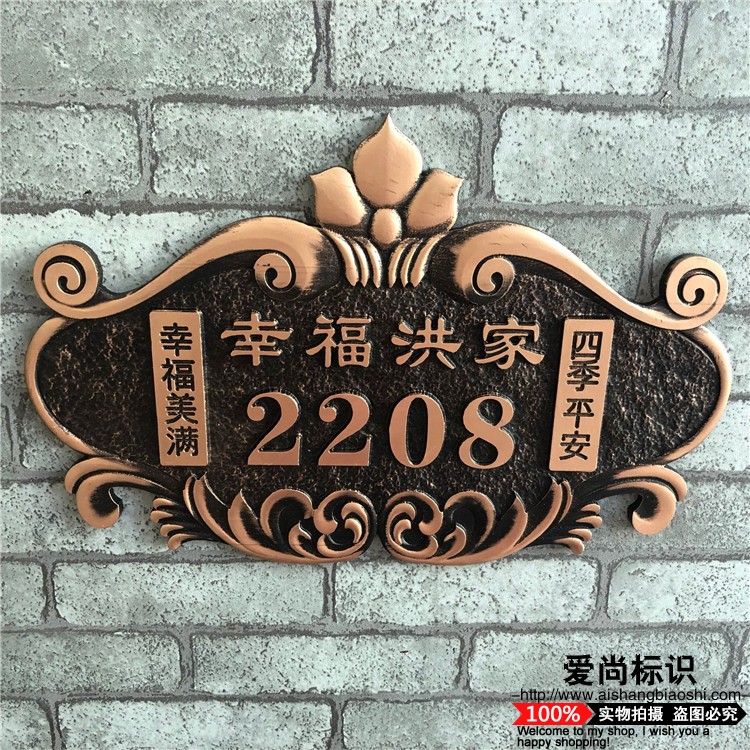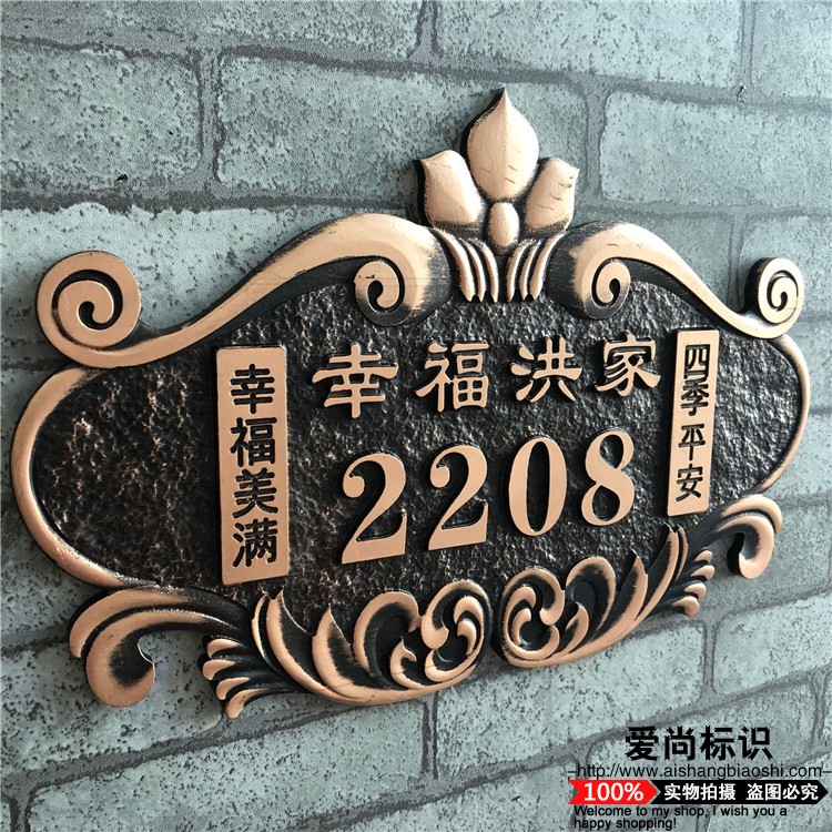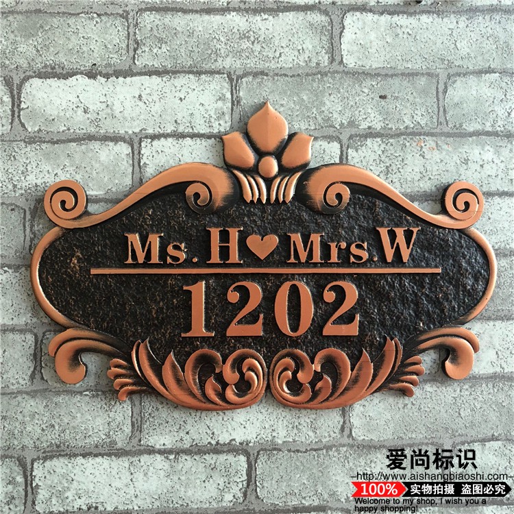 Antique bronze metal door number custom villa home high-end European-style number plate customized floor building unit sign