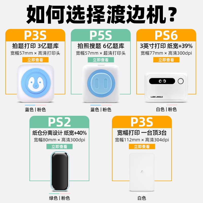 Watanabe wide width 3 inch HD wrong question printer P5 meow grunt photo handbook learning bully portable fan small finishing artifact without hand copy pocket cheap mobile phone shooting question printer