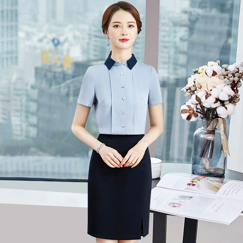 Short Sleeve Summer Interview Dress Sample House Display Center Front Office Workwear Beauty Salon Jewelry Shop Front Office Workwear Blouse