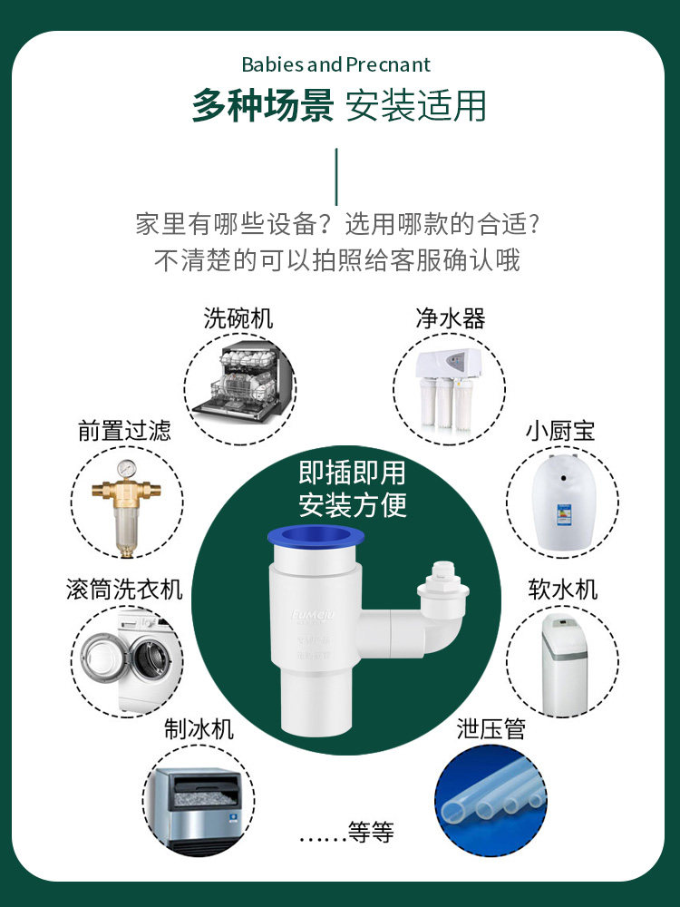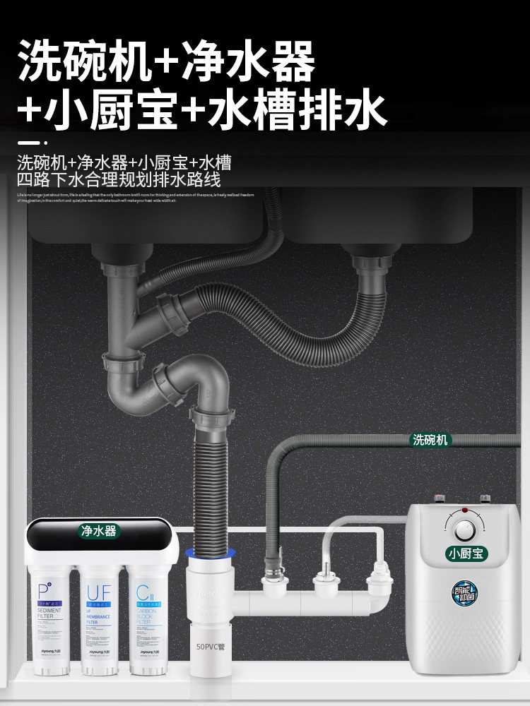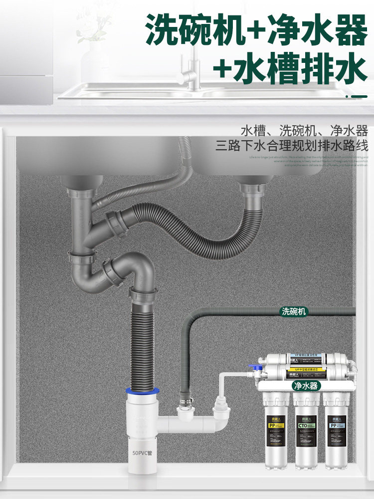 Kitchen sink dishwasher water purifier small kitchen treasure front washing machine drain pipe insert tee joint drain