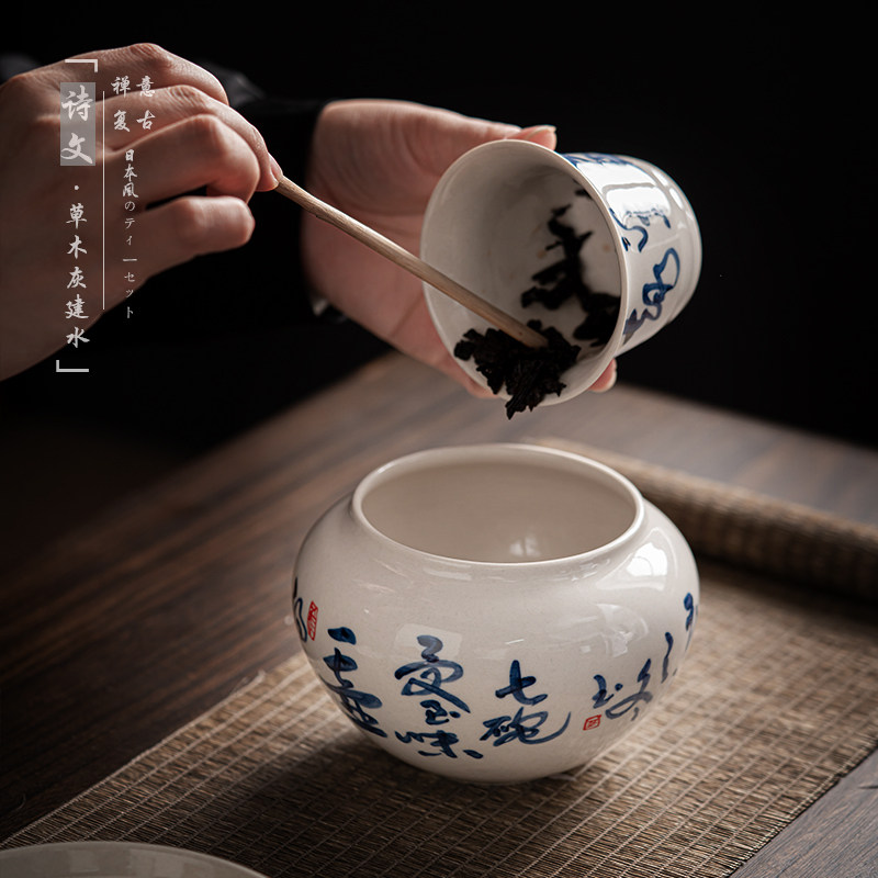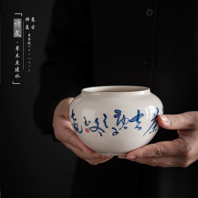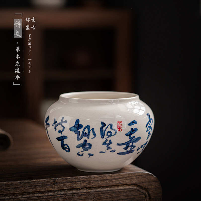 Day Style Jianshui Retro Hand-painted Grass Wood Ash Tea Residue Cylinder Tea Wash Cup Wash Water Spittoon Ceramic Utiliturg Tea Accessories Pen Wash