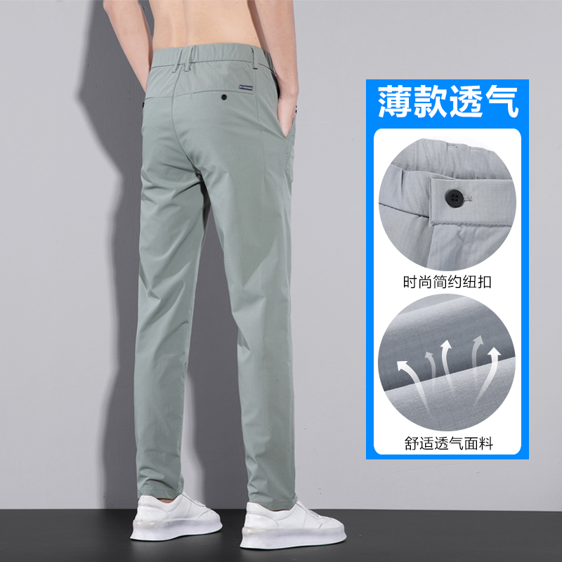 Ice silk pants men's casual pants summer ultra-thin Korean style trendy trousers light color versatile slim straight trousers