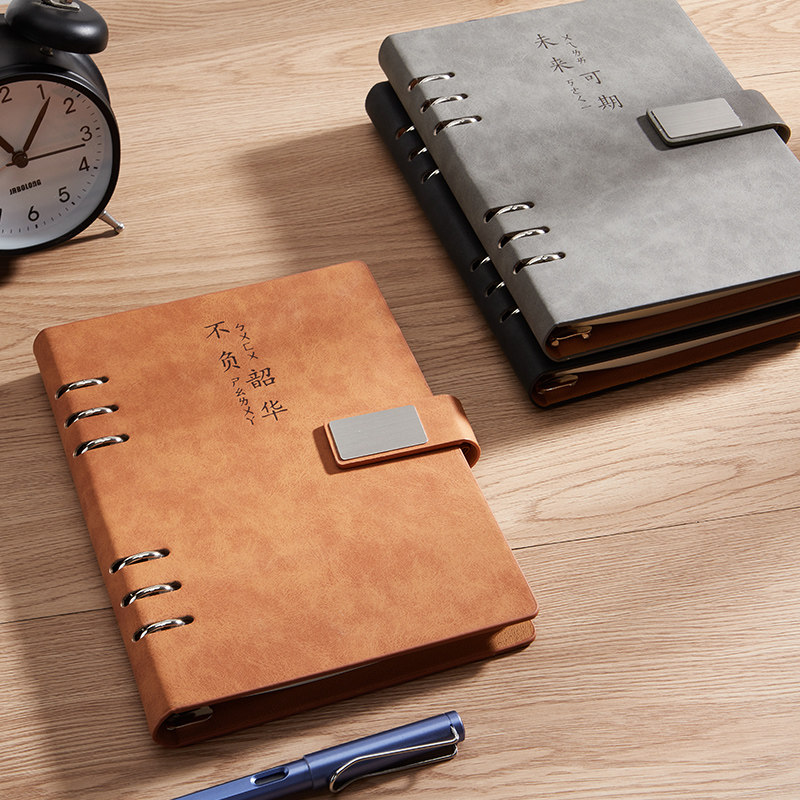 Loose-leaf book a5 notebook mirror buckle simple ins wind b5 notepad business office people detachable large thick meeting record student retro diary custom printable logo