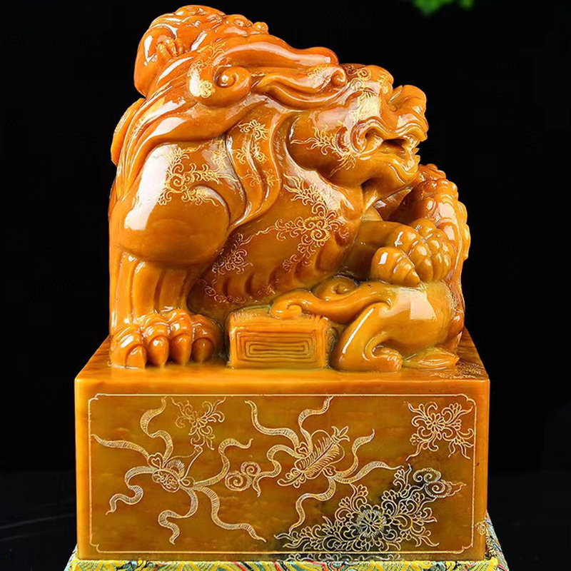Fujian Shoushan Stone Fields Stone Fields Yellowstone Leopard Large Seal Swing Piece Hand Engraving Natural Chishi Name Badge Collection Certificate