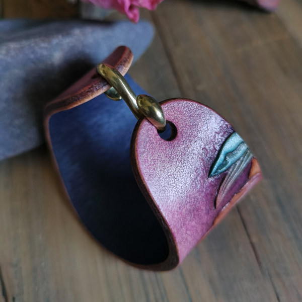 Handmade vegetable tanned cowhide carved accessories jewelry custom painted iris inlaid green chalcedony women's bracelet