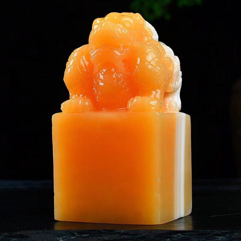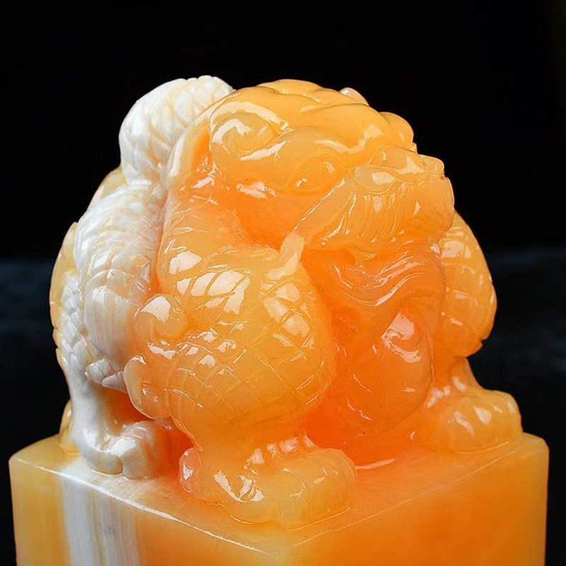 Golden Jelly Stone Dragon Turtle Seal Handlebar Piece Handmade Engraving Craft Gift Hem Accessories Natural Wonder Stones to Play the Name Chapter Gift Gift collection