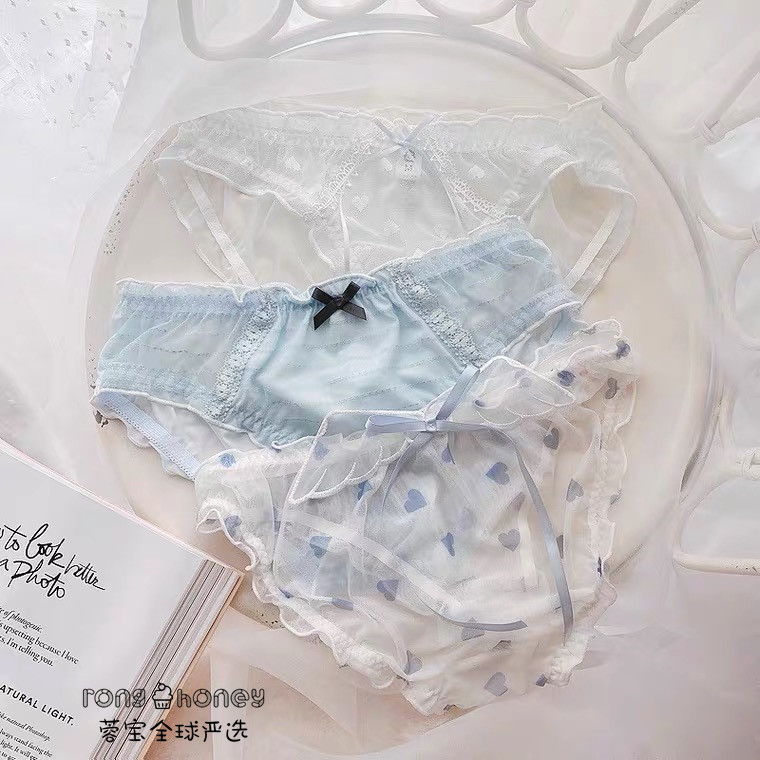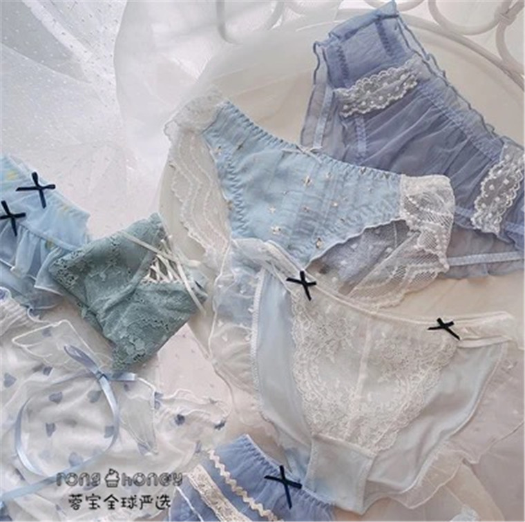 Japanese gp sweet lace panties girl mesh milk silk fairy blue line small fresh cotton crotch briefs