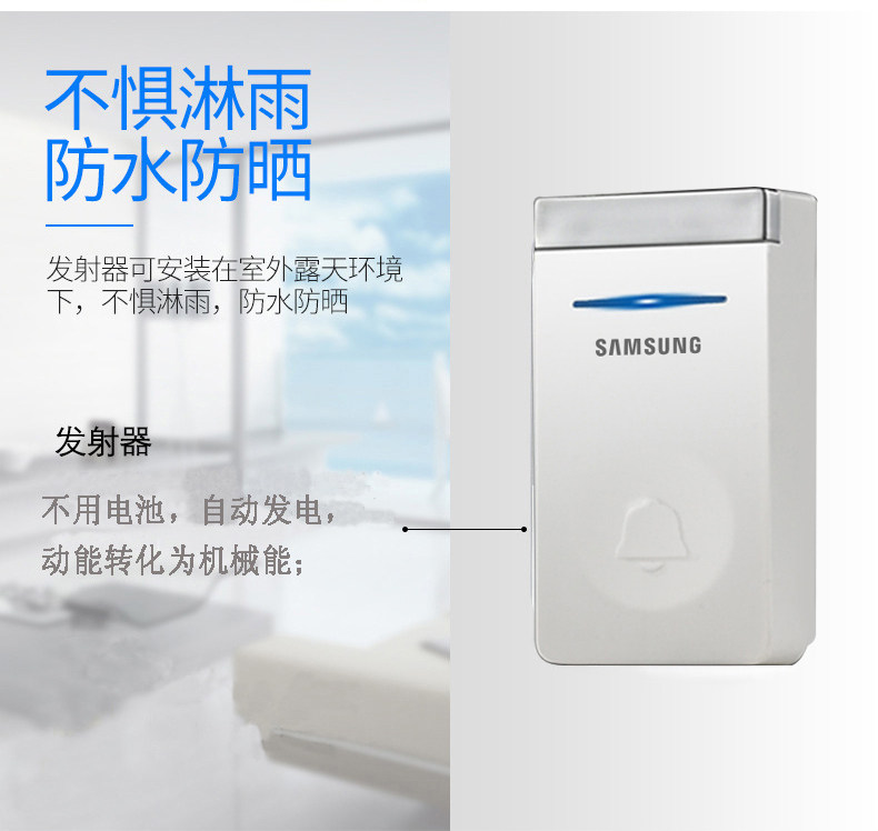 Samsung doorbell wireless home smart ultra-long range spontaneous power wireless doorbell switch one drag two shout