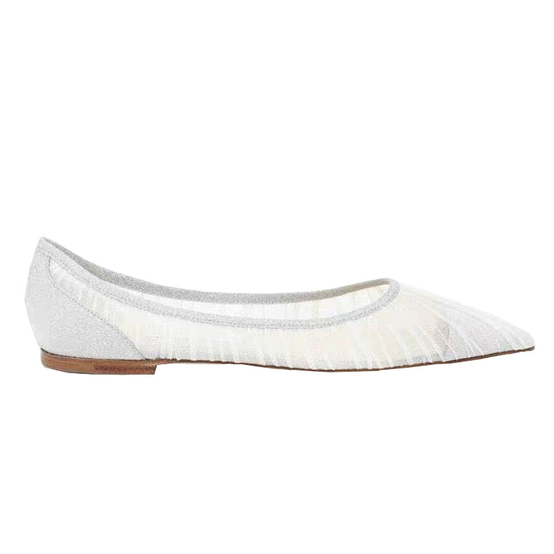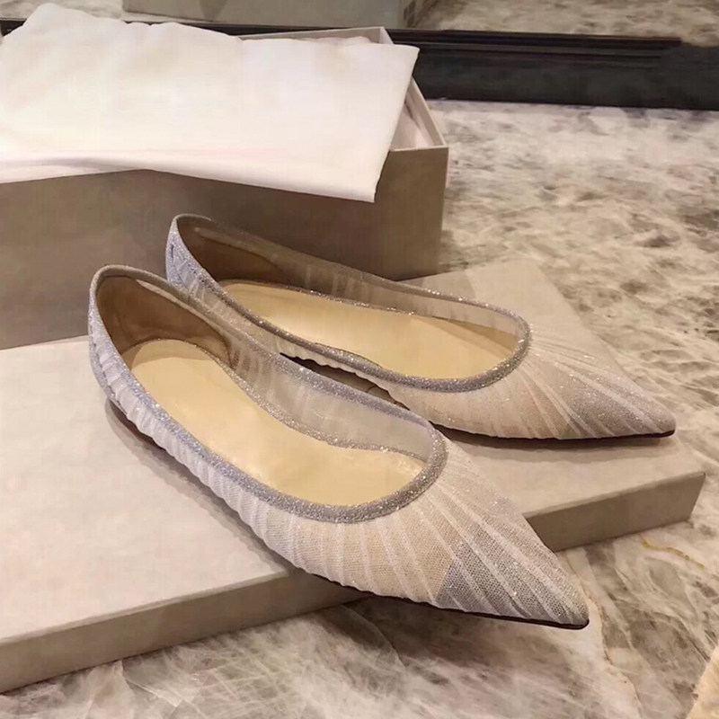 Wear it for holiday ~ Benefits flat heel Single shoe Women net yarn Summer outwear Comfortable Silver Flat Bottom Shoes
