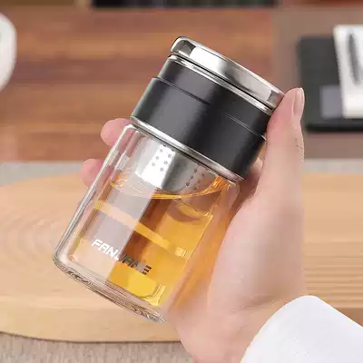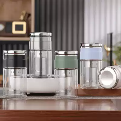 Traditional and simplified mini portable tea cup Net Red simple tea separation Cup male and female double glass filter Cup