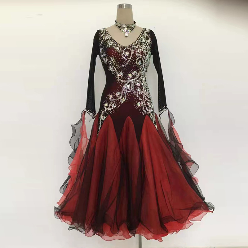 National standard dance costumes waltz performance costumes modern dance competition skirt ballroom dance plus diamond swing skirt square dance skirt