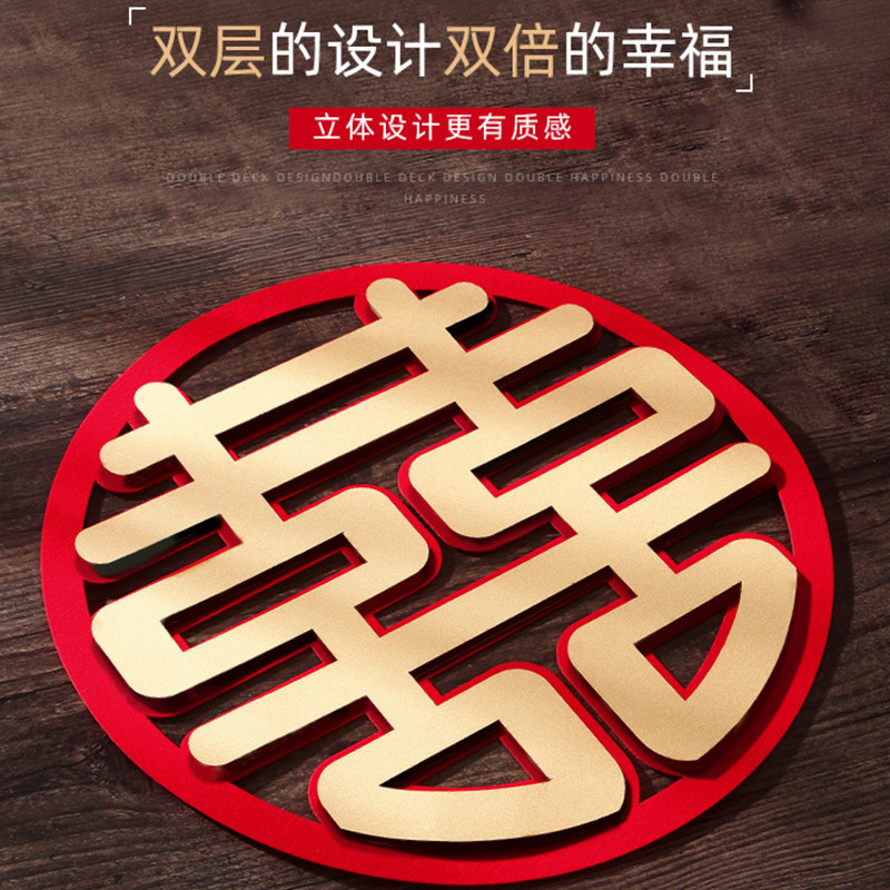 Golden Red Round Double Joy 20CM (Send Some Glue) Big Red Non-woven Fabric Round Delight 30CM (Send Some Glue) Mickey Xi Character 20CM (4 Loaded And Sent Some Glue Gold Red Round Double Joy 30CM (send some glue gold