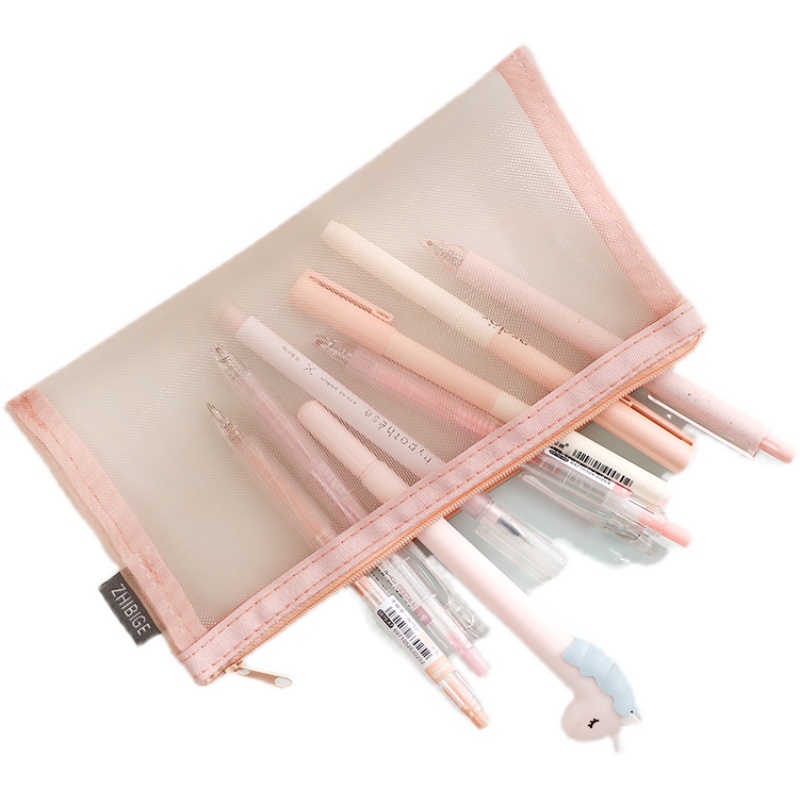 Simple transparent mesh pen bag student test stationery bag portable large-capacity storage pencil bag salt pen bag