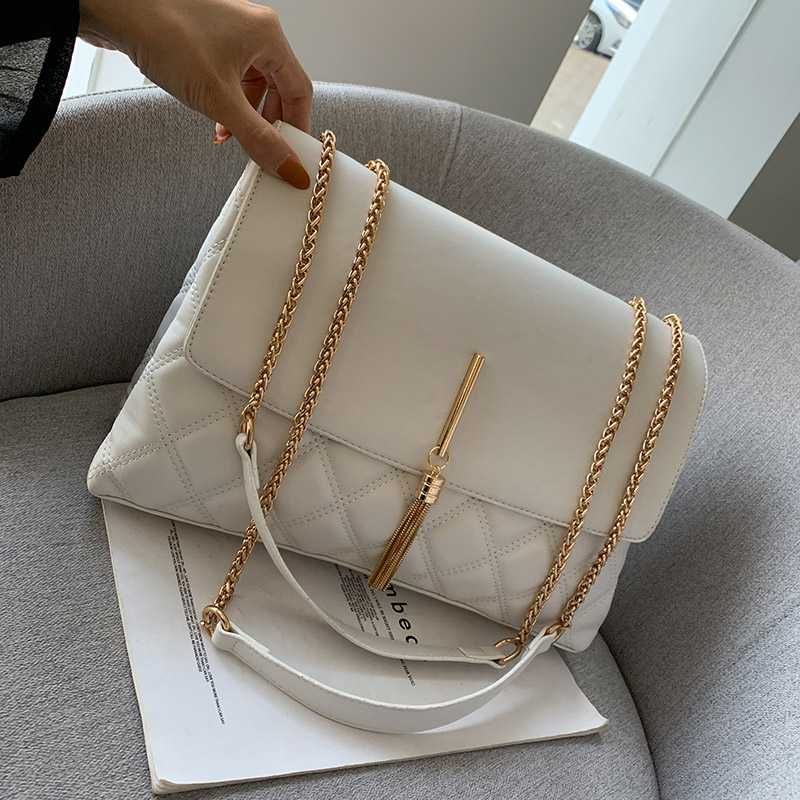 Hong Kong Chaogue High Sensation Rhombog Chain Big Bag Girl Bag 2022 New Large Capacity 100 Hitch Satchel Shoulder Bag