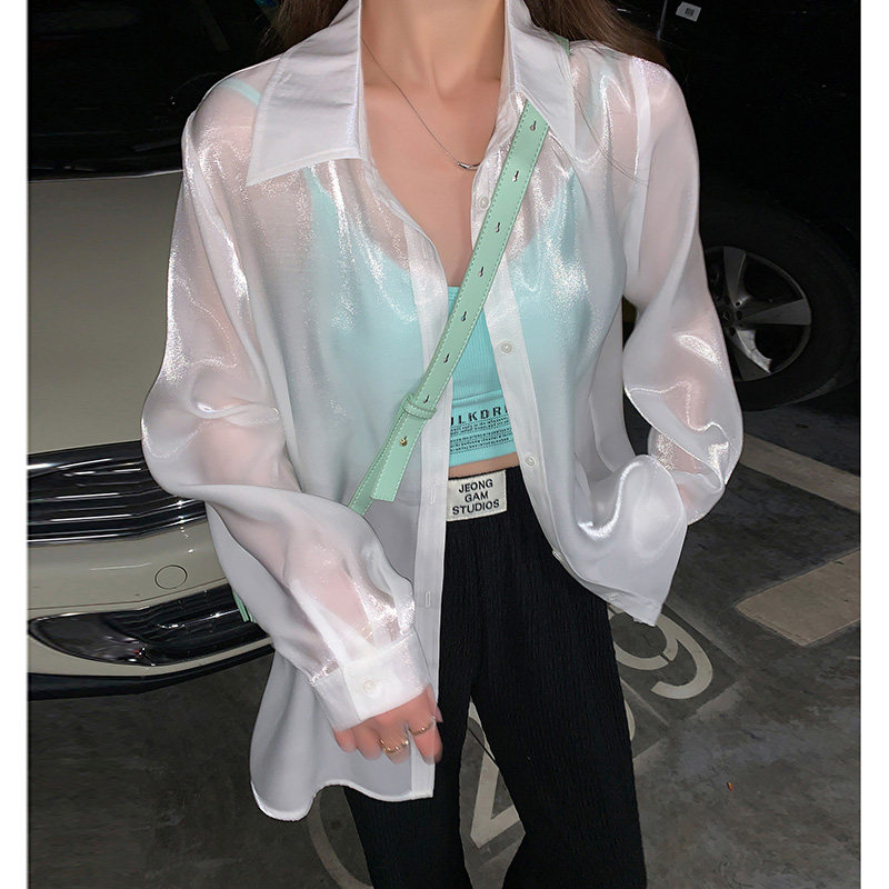 Man fish Ji sunscreen woman Summer thin jacket loose long sleeves Fashion cardiovert blouse Fairy Temperament Sunscreen Shirt