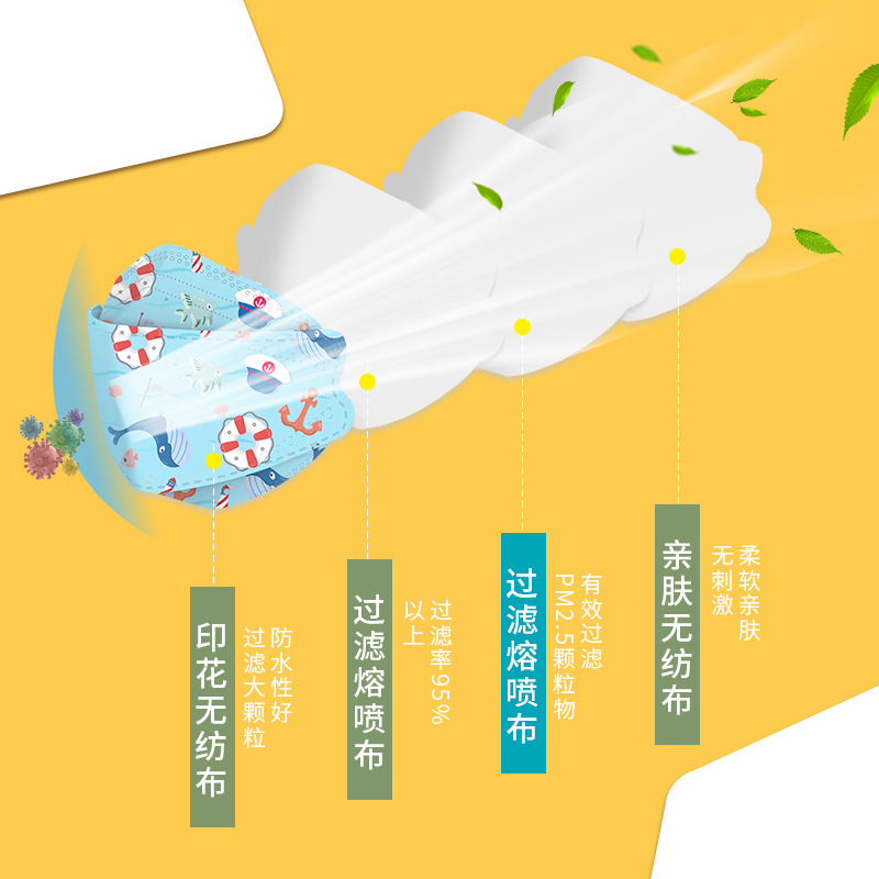 Can send Hong Kong K94 children's three-dimensional protection four-layer car cartoon printing boys and girls willow leaf mouth and nose earmuffs