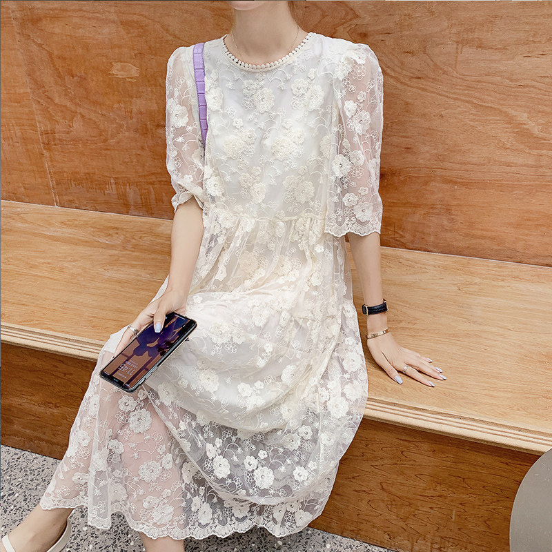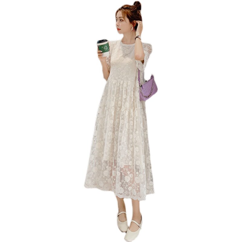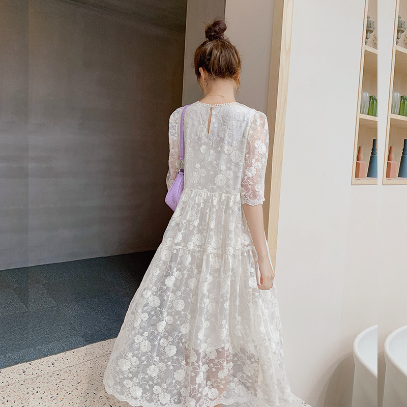 Heavy Industry White Lace Dress Female Super Senson High-end Ogan Yarn Embroidery Wears Long Dress Spring Autumn