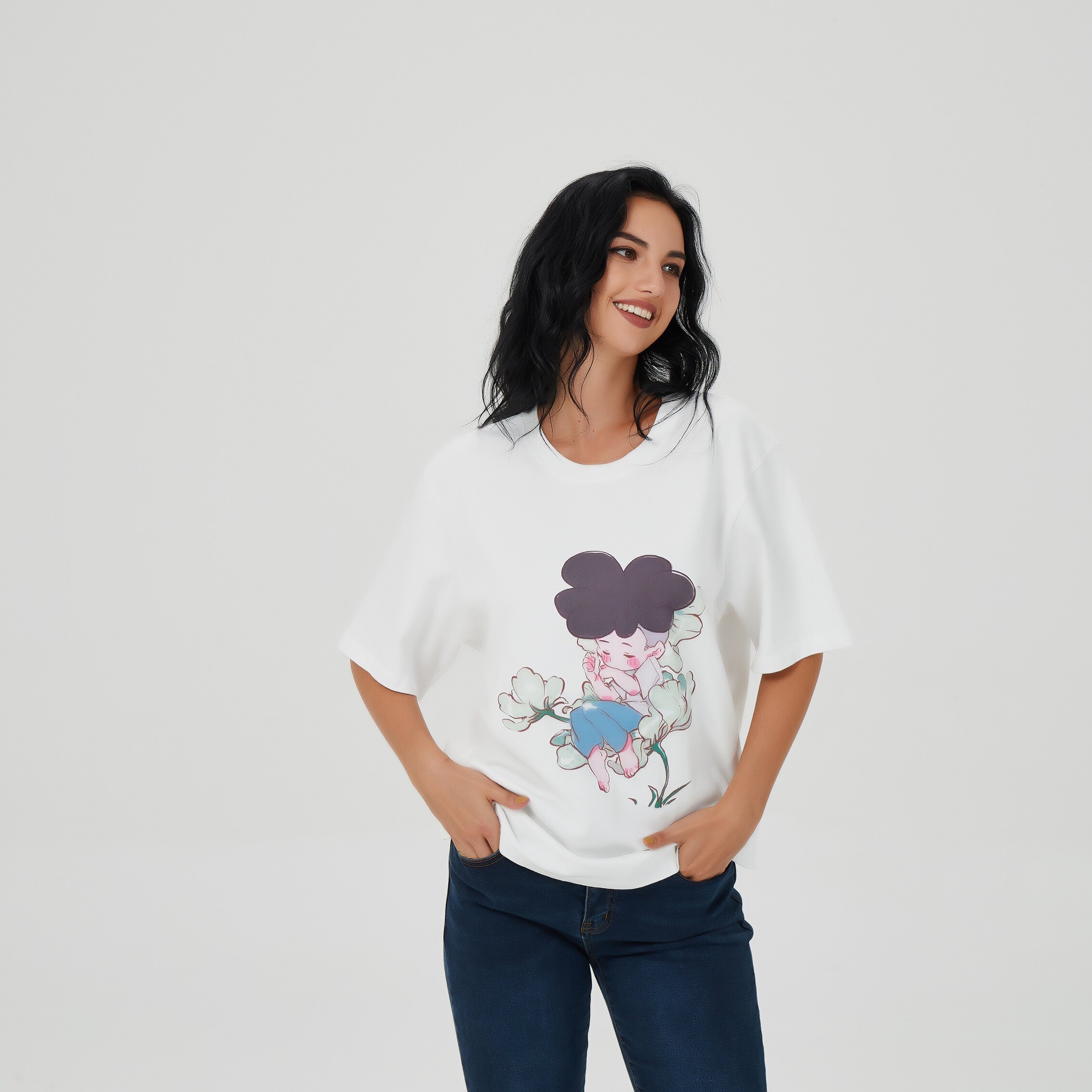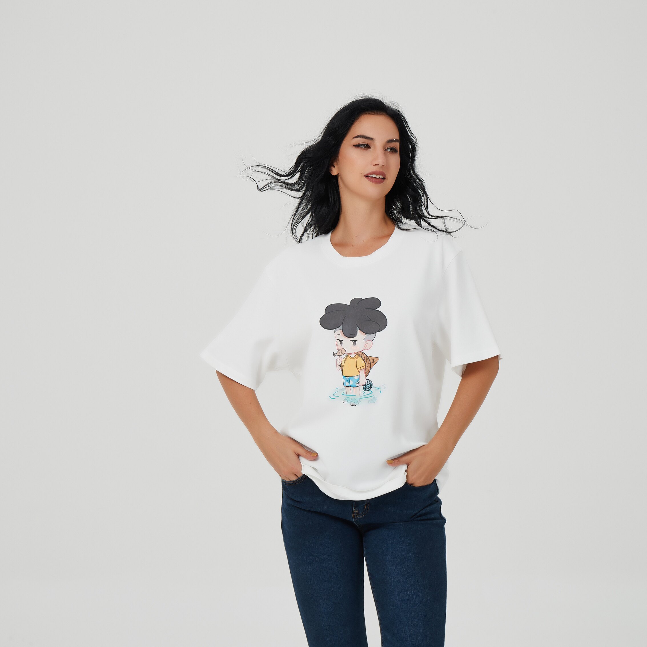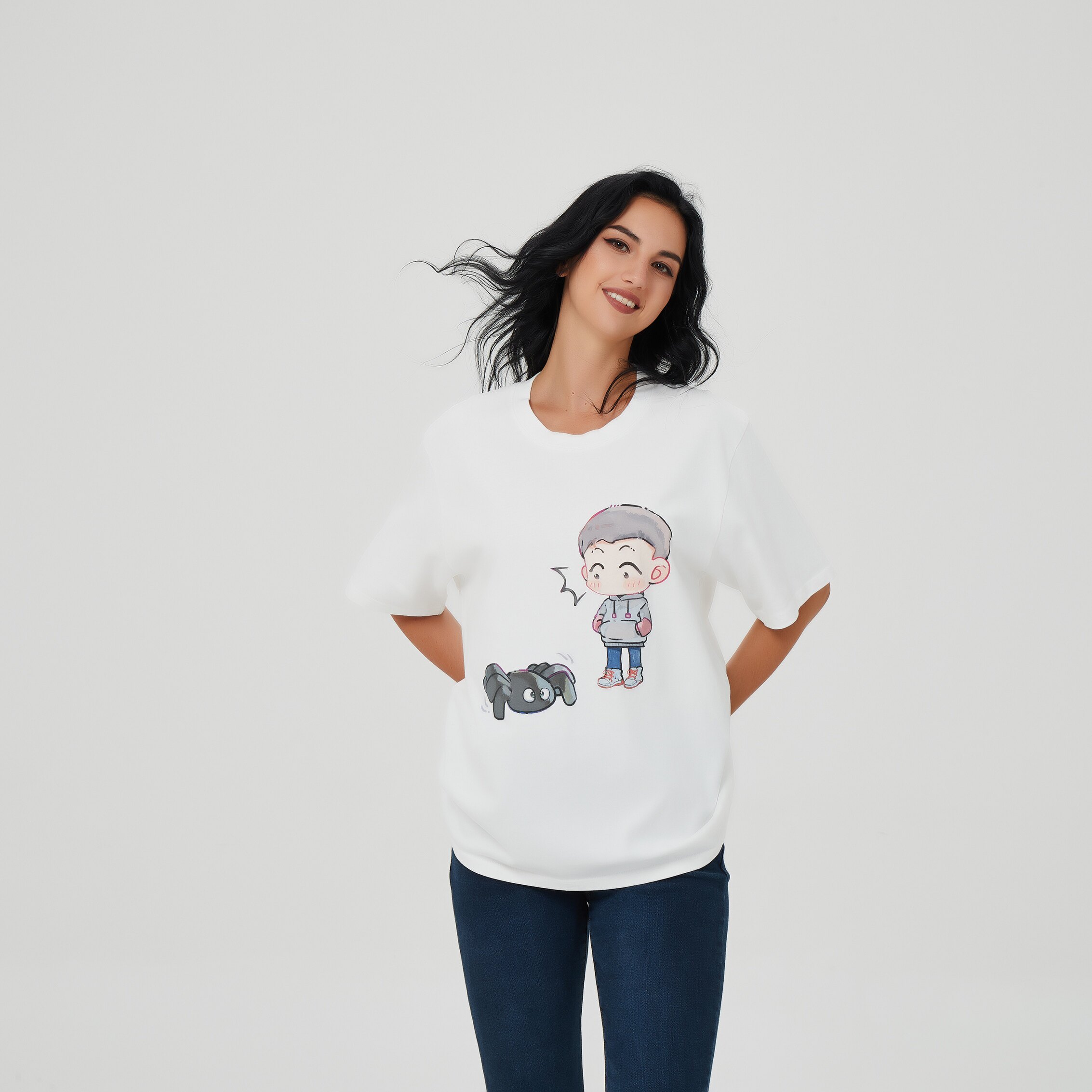 Zhao Chenlong the same Traphero cartoon image printing loose half-sleeved summer small fresh washed round neck short sleeves