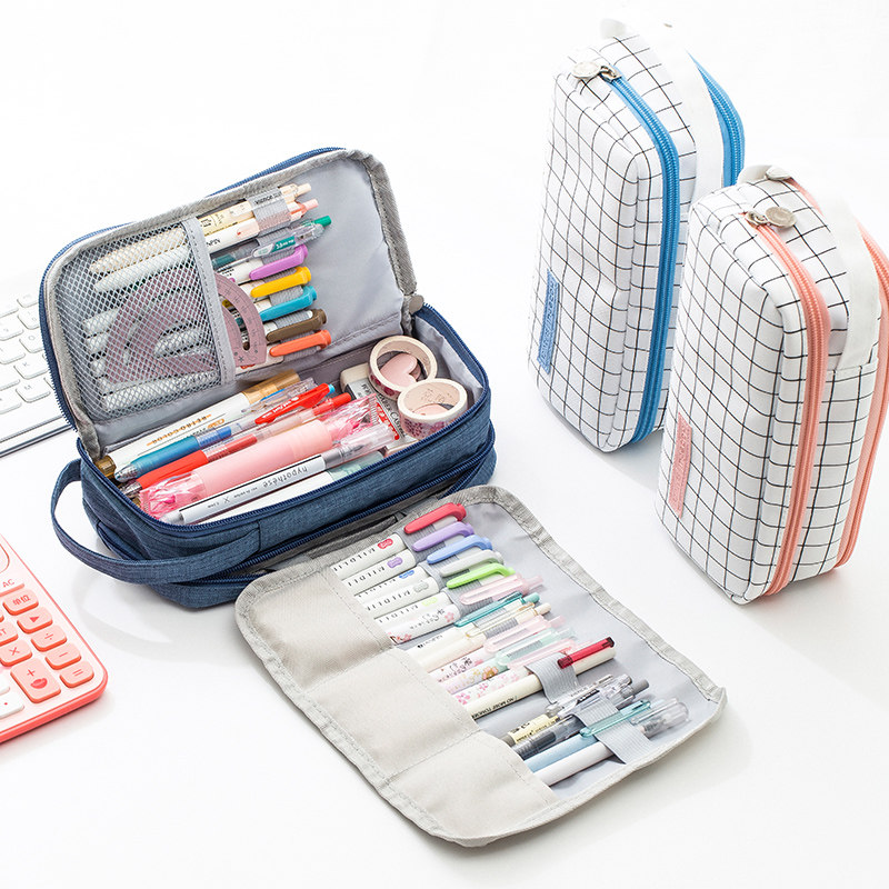 Large Capacity Canvas Pen Bag Ins South Korea Brief Girl Cornetto Feature Online Red Teenage Girl Hearts Pencil Case Middle School Student Day Department Male Tide Salt Department College Student Lead Pencil Case Pen Bag Brief Lady