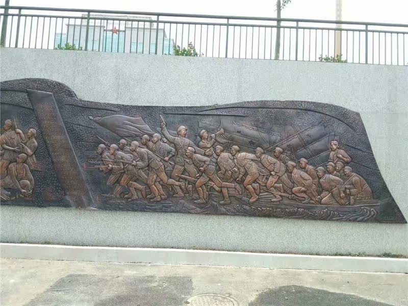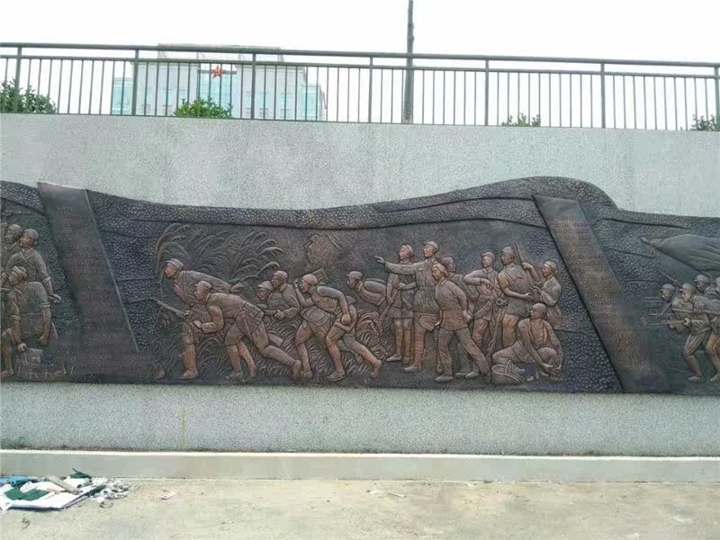 Fiberglass figure relief custom large outdoor cast copper soldier troops sculpture relief red cultural statue