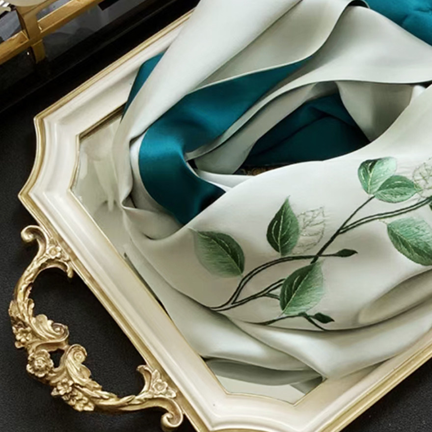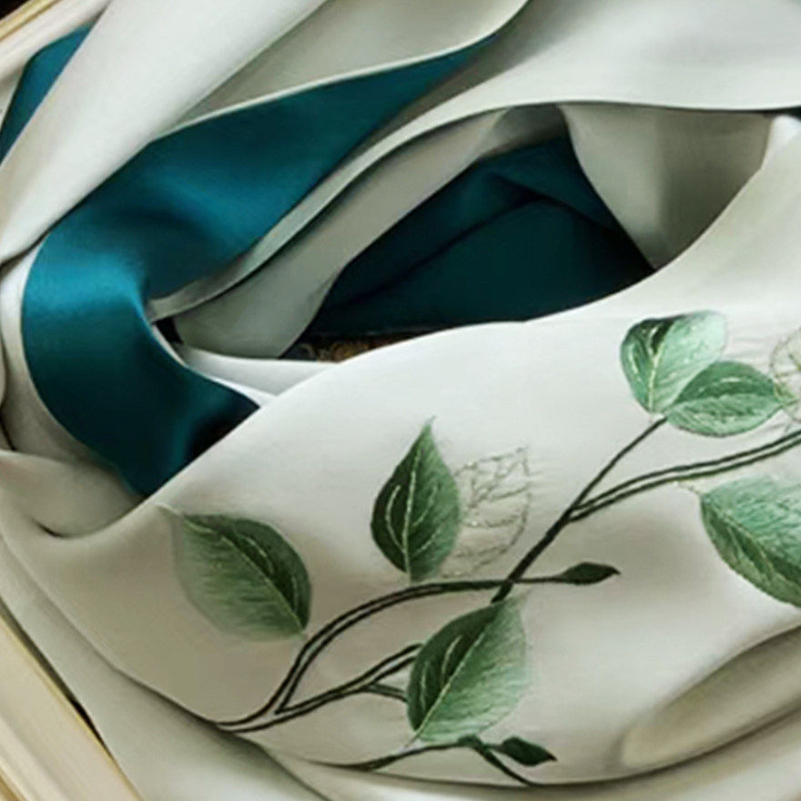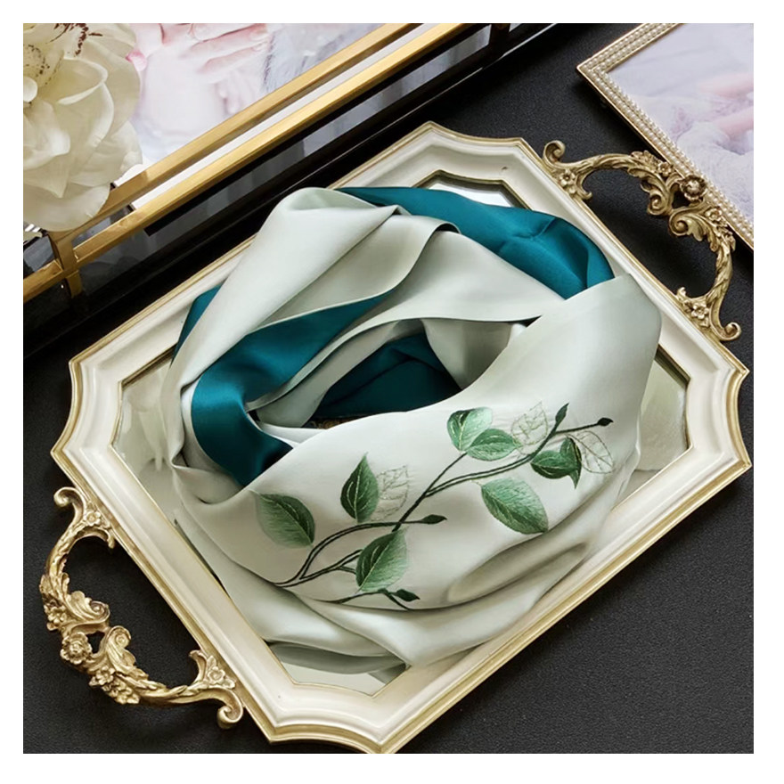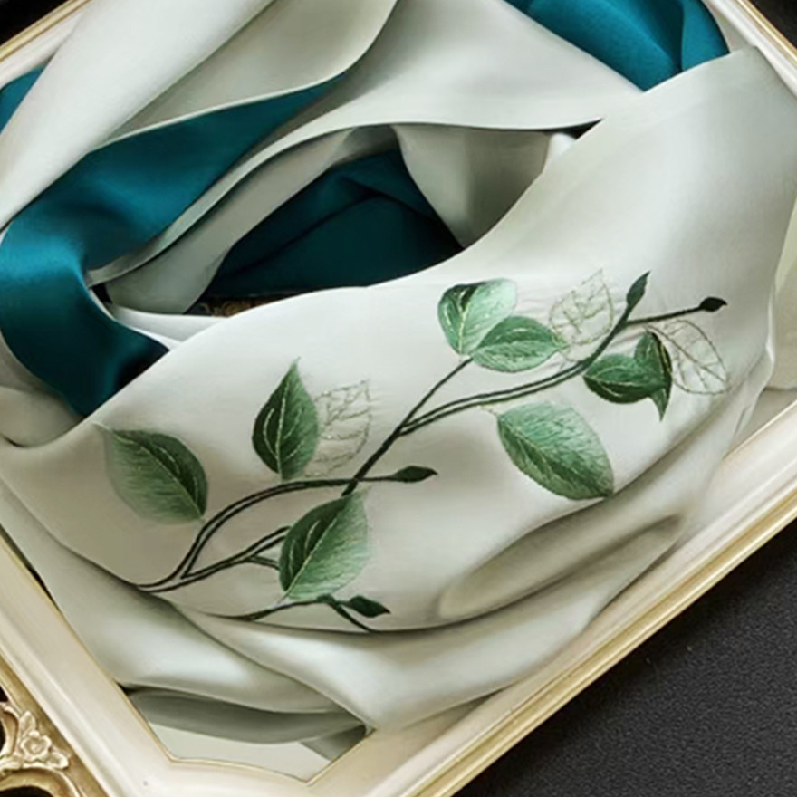 Pure Hand Embroidered Mulberry Silk Scarves "West Smoked Water Green" warm and delivered Embroidery Genuine Silk