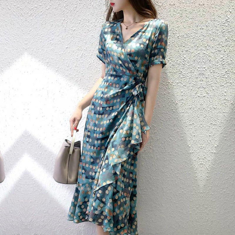 Mularsa Method Retro Polo Dot Colored Ocean Dress Women 2022 Summer collection Waist Display Slim Fit Tea Hysteria