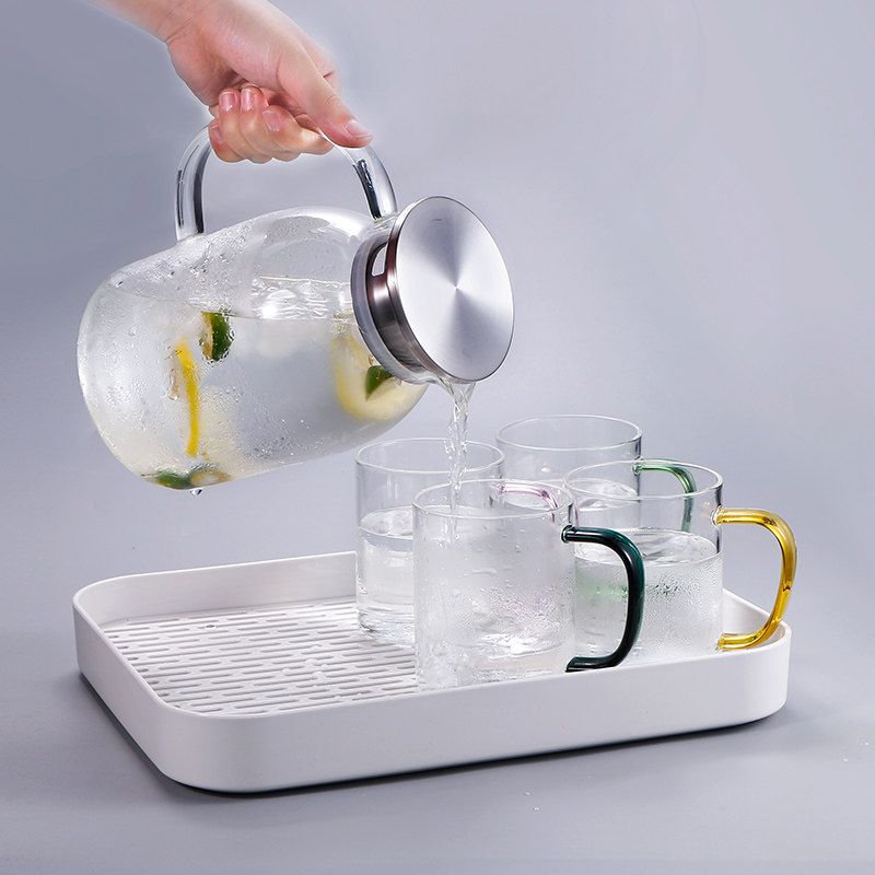 2.0L round pot + 6 x 400ML cups + tea tray + cup holder