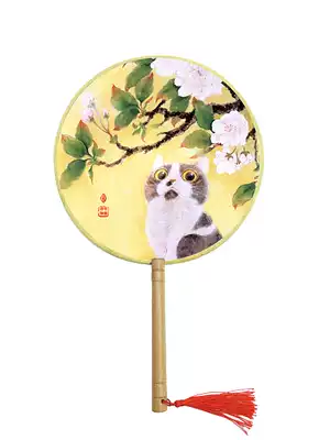 (Instant noodle cat) original design cute cat double veiled tassel fan Hanfu ancient style Chengdu city tourism commemoration