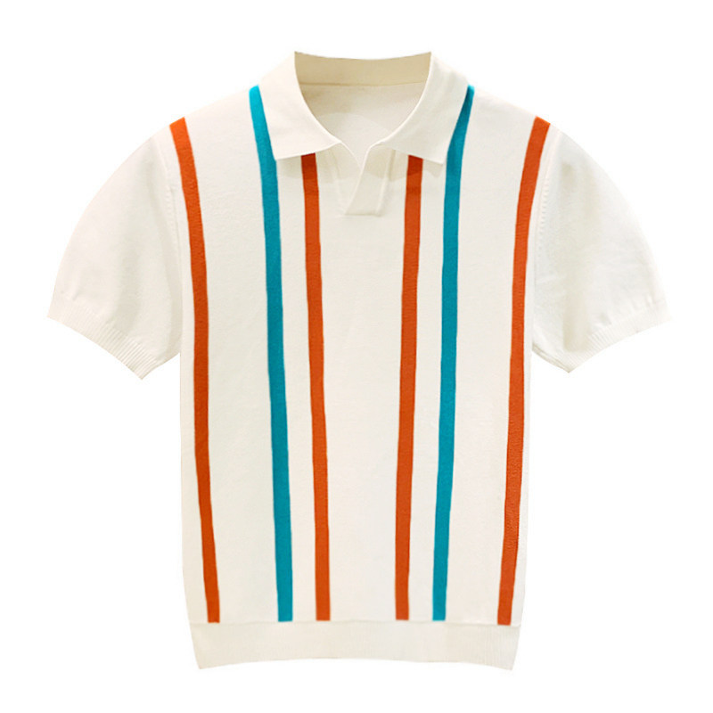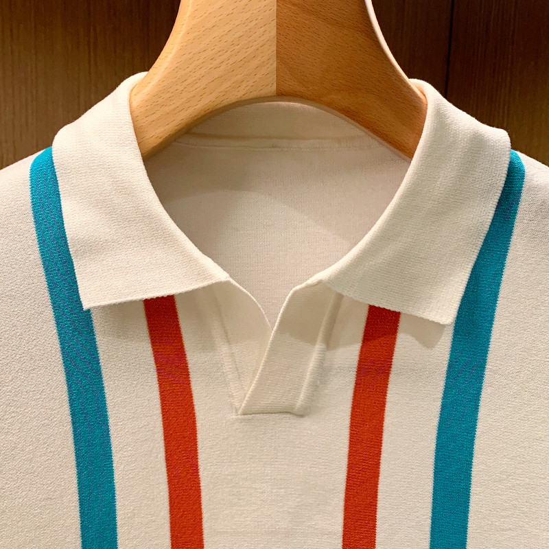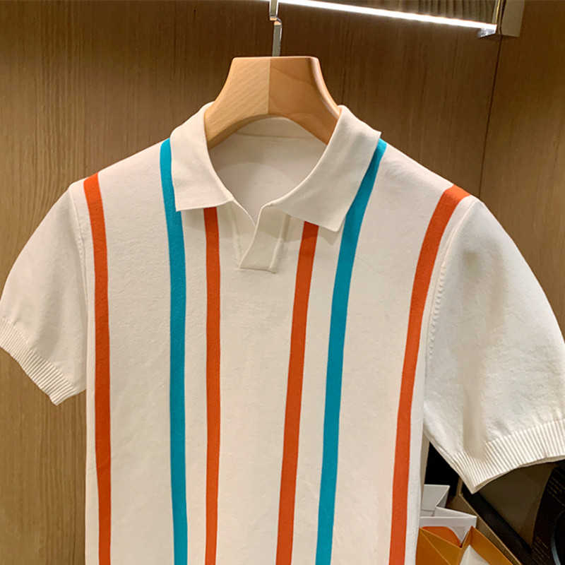 Korea's simple striped coloured knife knife T - shirt for men with summer Ruyah Young Fashion Men Polo shirt