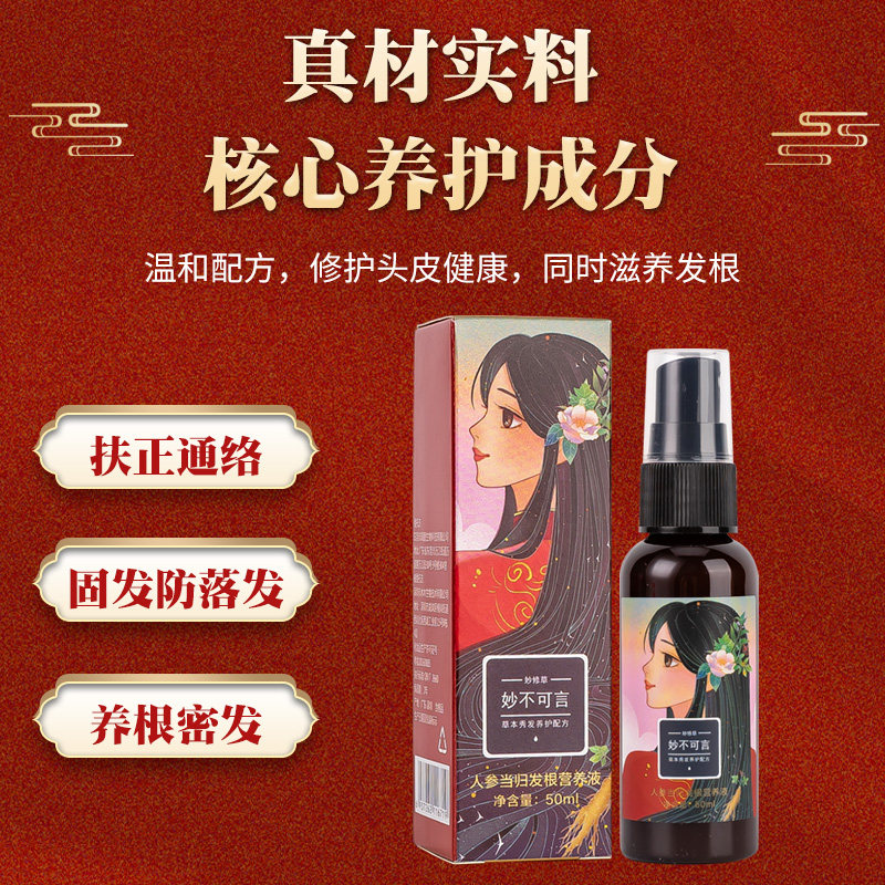 Miaoxiu grass ginseng angelica hair root nutrient solution portable anti-drop nutrient water conditioner hair-fixing moisturizing hair
