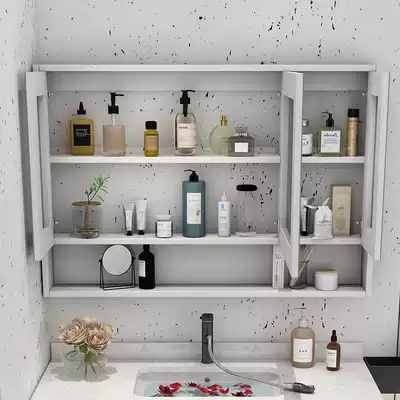Bathroom smart mirror cabinet wall-mounted toilet mirror box custom dressing room rack wall-mounted solid wood mirror cabinet