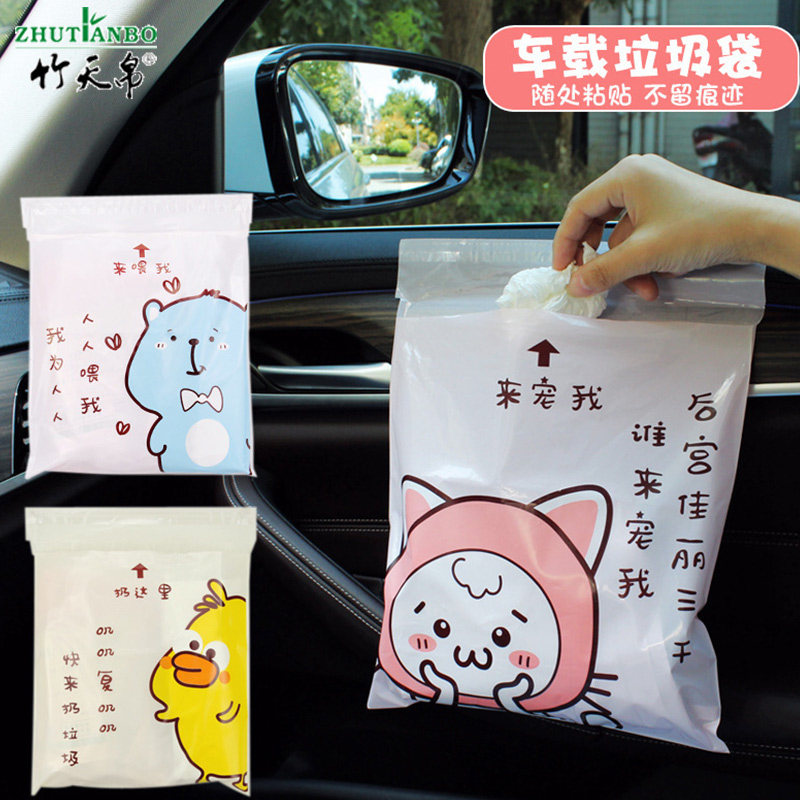 Car trash bag pasted trash bin car with a special multi-function cleaning bag on foldable vehicle