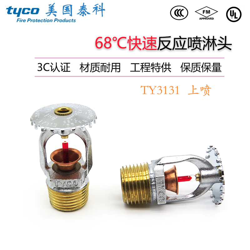 TY3131 US Tyco 3mm68 °C Quick Response Upright Fire Spray head K80-68 degrees Spray FM