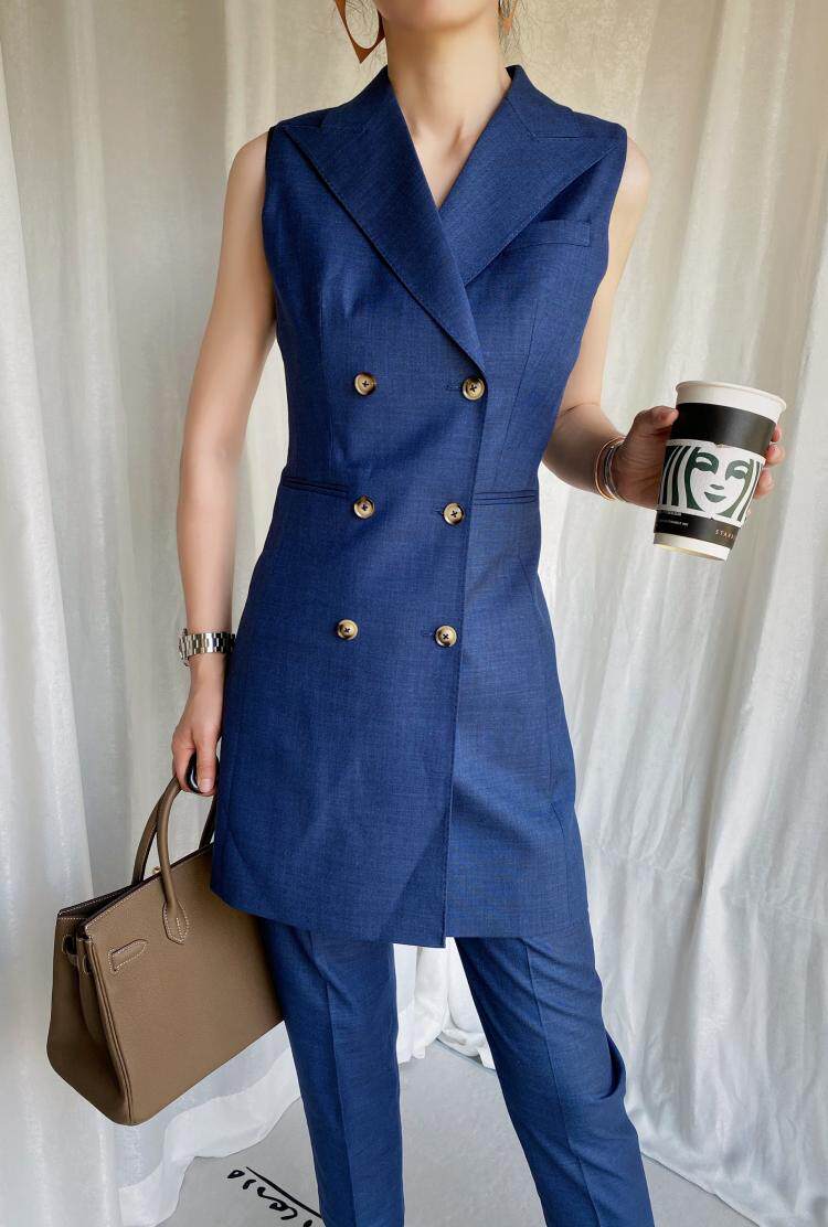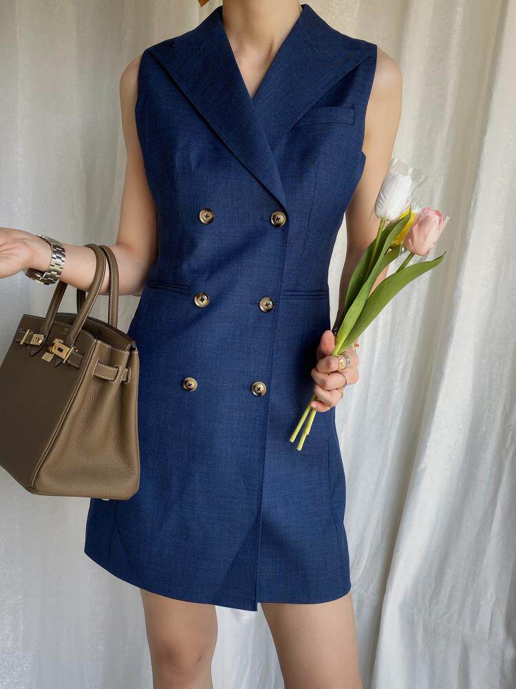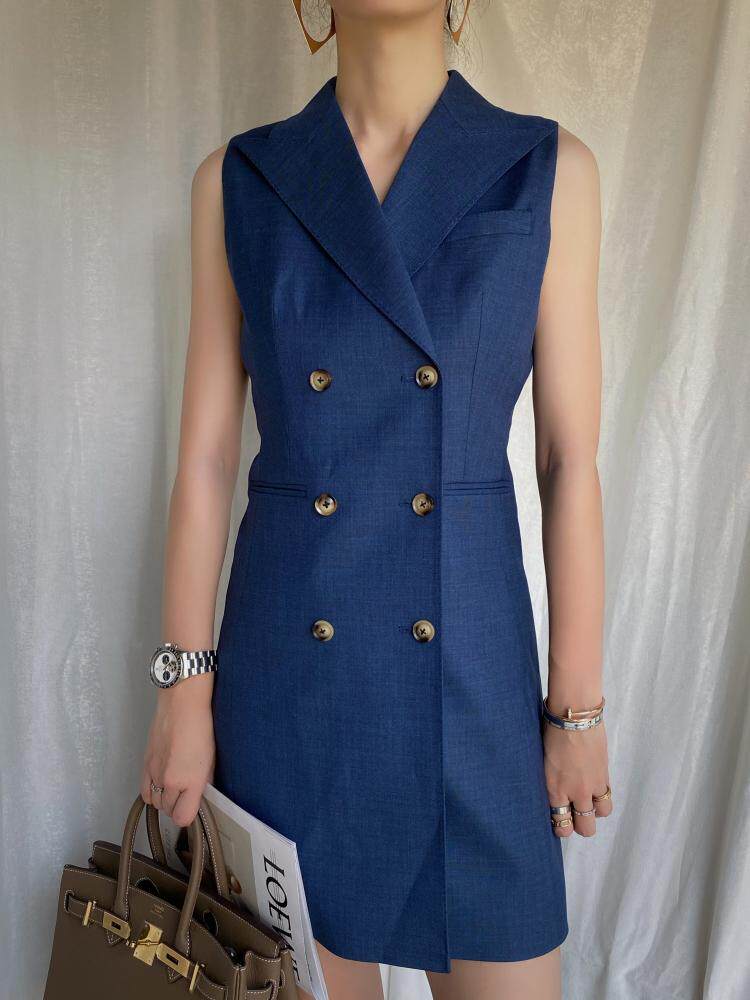 Gongzhen Suit Dress Double-breasted Waist Slim High Sense Vest Skirt Professional Slim Fashion Temperament Summer
