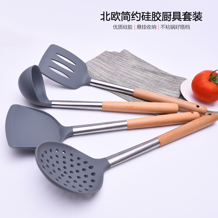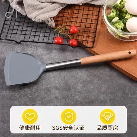 Silicone spatula High temperature special non-stick spatula frying spatula Frying spatula spoon Kitchen supplies Stainless steel wood long handle