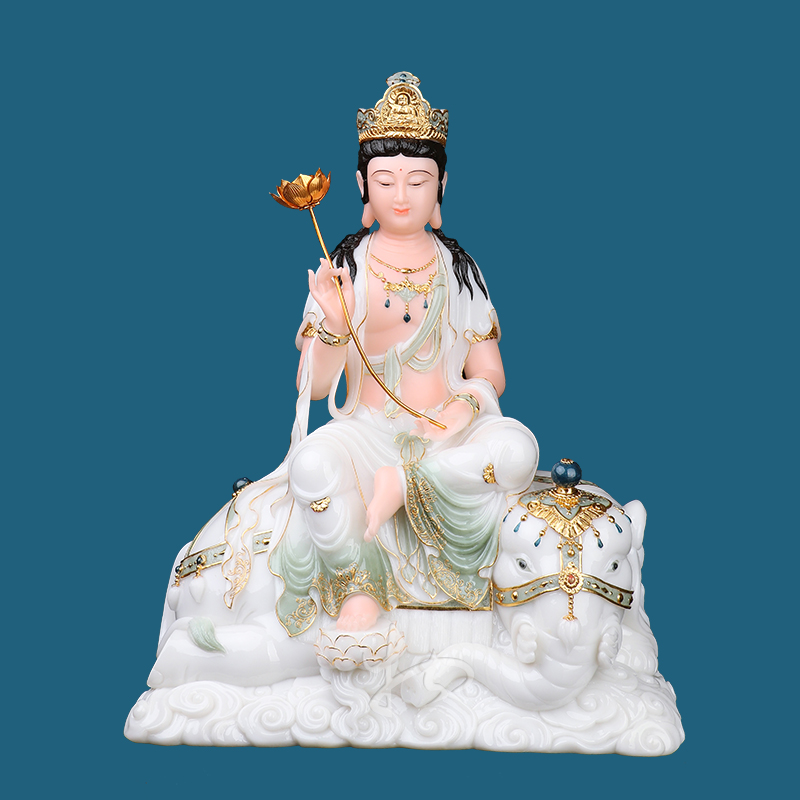Wudao Manjushri Samantabhadra Bodhisattva Huayan Sansheng white marble crafts Buddha statue living room Buddha Hall Chinese desktop decoration
