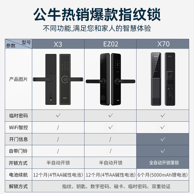 Bull smart fingerprint lock X70 electronic door lock anti - theft door lock small 1X3 automatic intelligent door lock