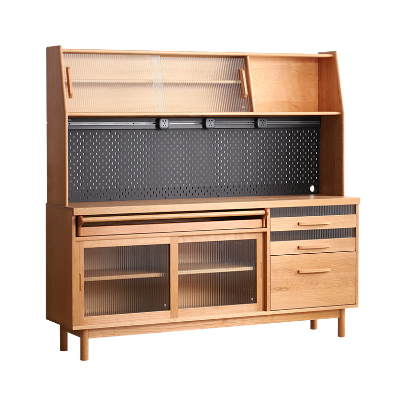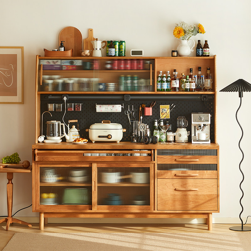 Nordic solid wood sideboard integrated against the wall hole board tea cabinet kitchen cupboard high cabinet Japanese cherry wood wine cabinet