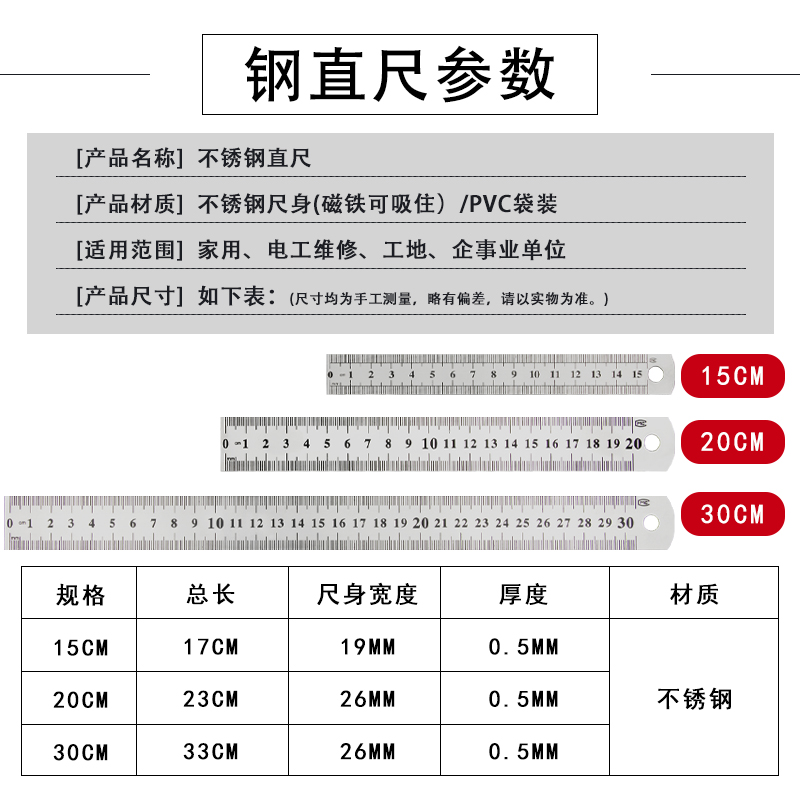 Steel ruler tool steel ruler 15cm 20cm 30cm stainless steel measuring tool steel ruler wood working with drawing drawing