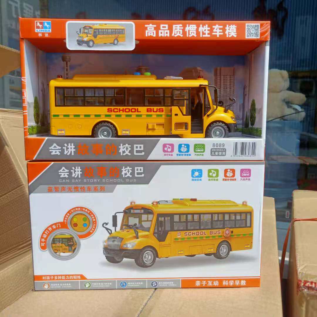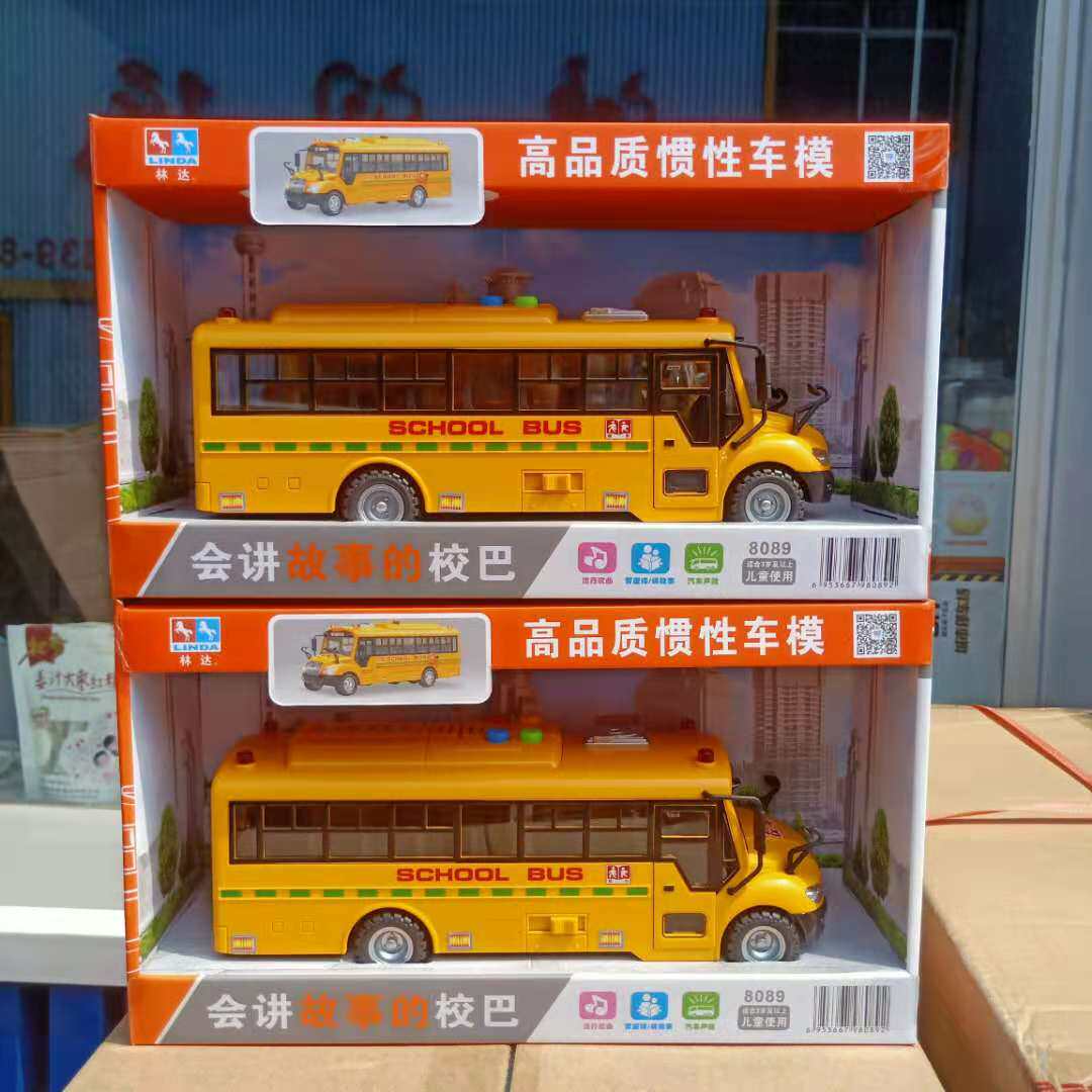 Linda's new large school bus children's toy car baby simulation school bus door open bus boy bus
