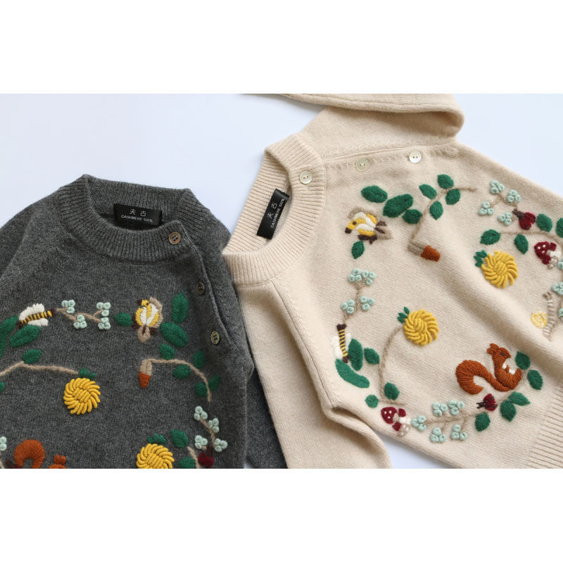 Parent-child cashmere shirt woman 100% Mountain cashmere thickened Japanese milk oil color cute embroidered handmade baby sweaters