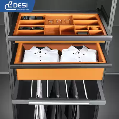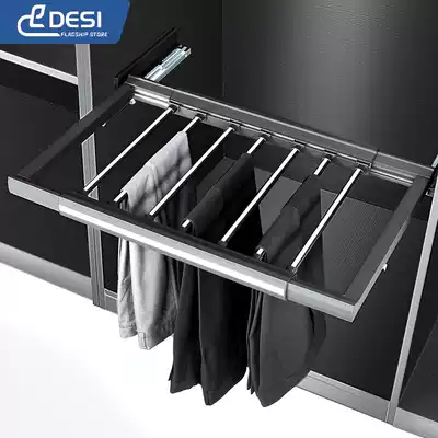 Wardrobe inner trouser rack telescopic household pull-out multifunctional pants drawing rack slide rail hanging trouser rack push-pull damping basket