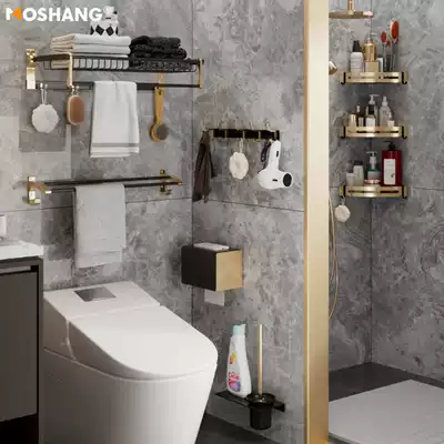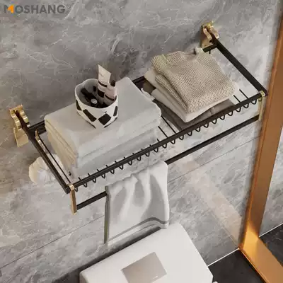 Towel rack Light luxury style bath towel powder room bathroom shelf Wall-mounted toilet clothes rack free punching net red
