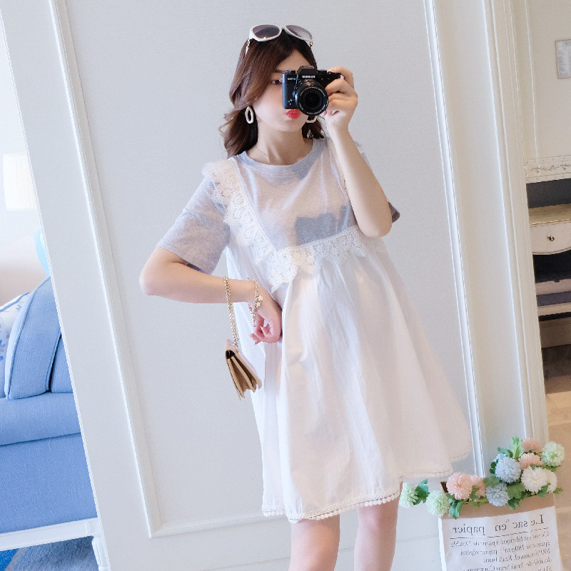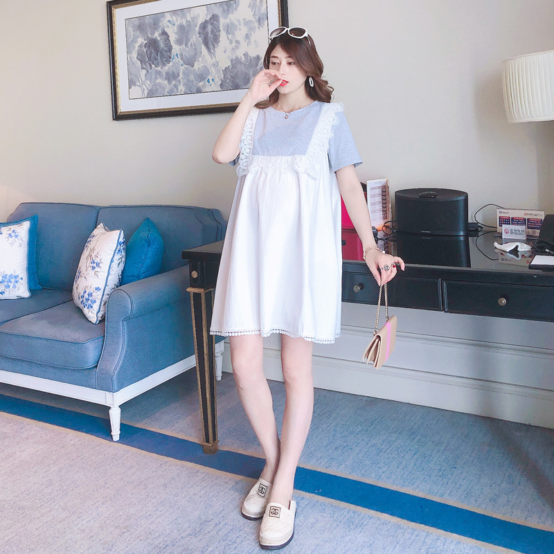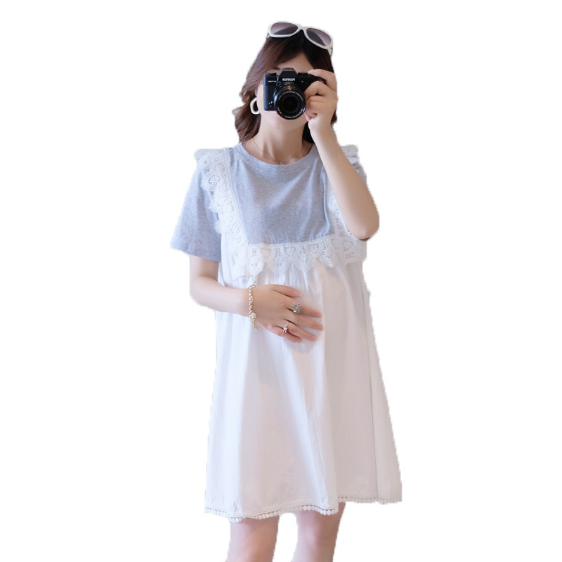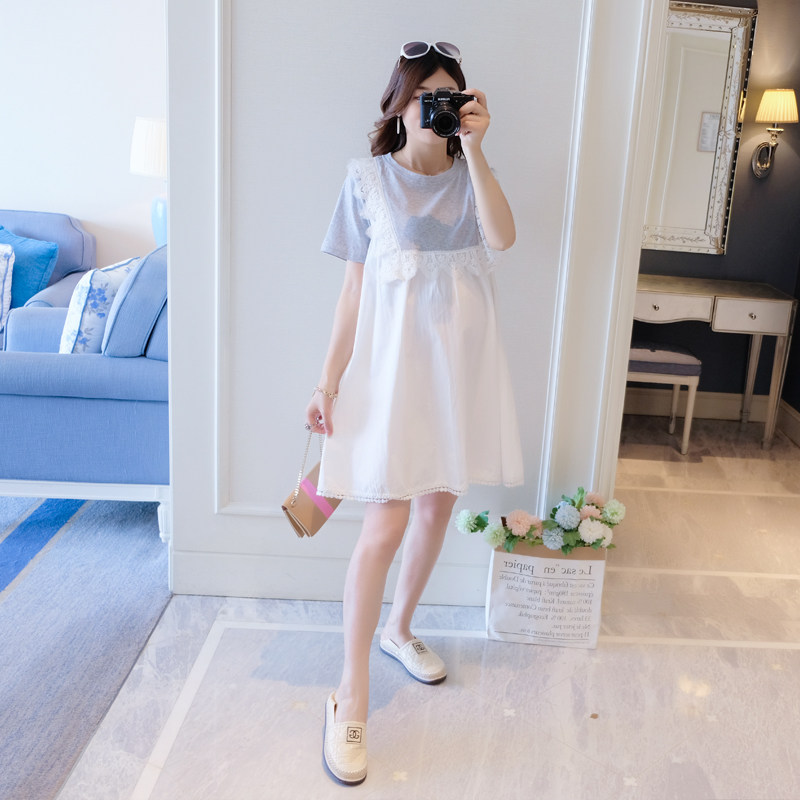 Maternity clothing summer dress does not show the bosom to cover the belly to go out can breastfeed loose fashion age-reducing pregnant women skirt summer
