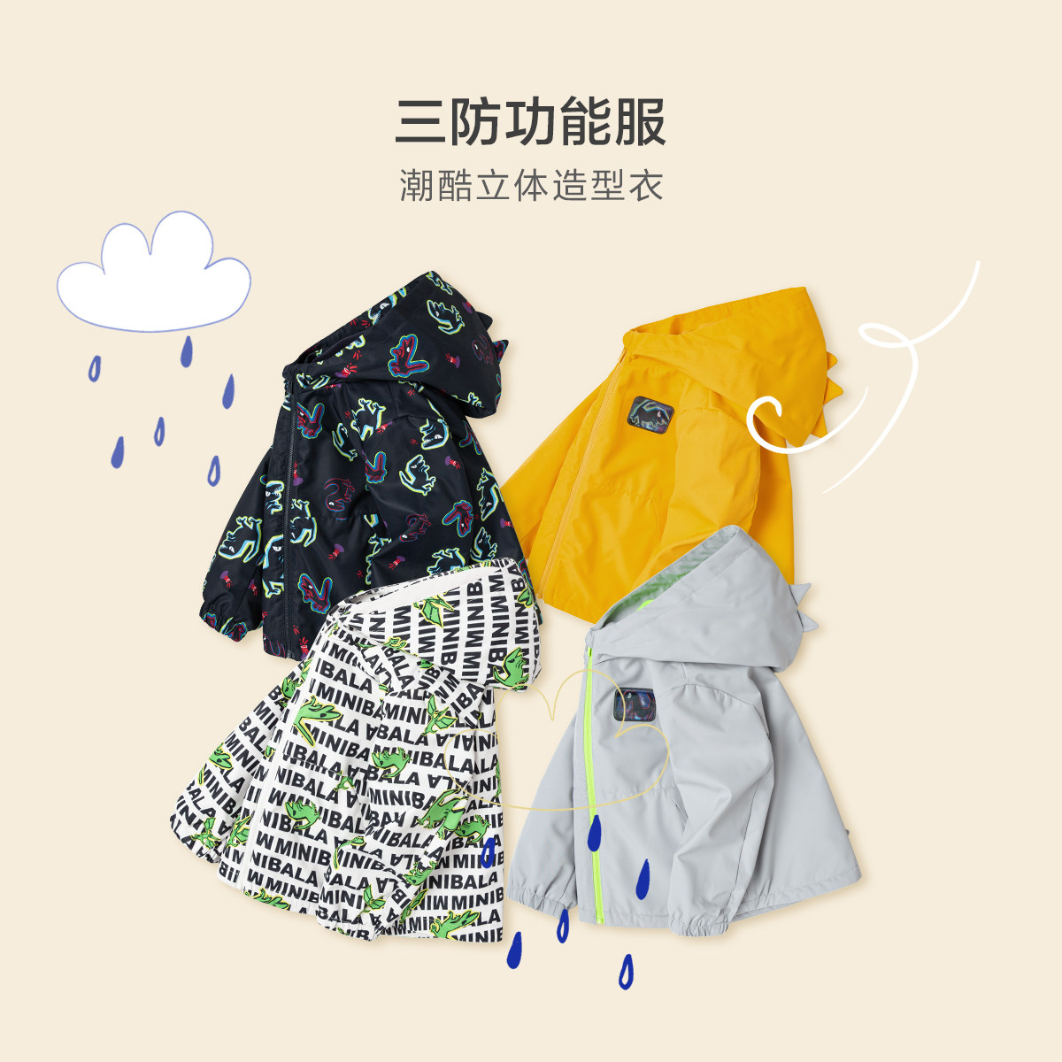 Mini Barabara children's jacket spring boy three-proof windproof printing hooded three-dimensional small dinosaur jacket