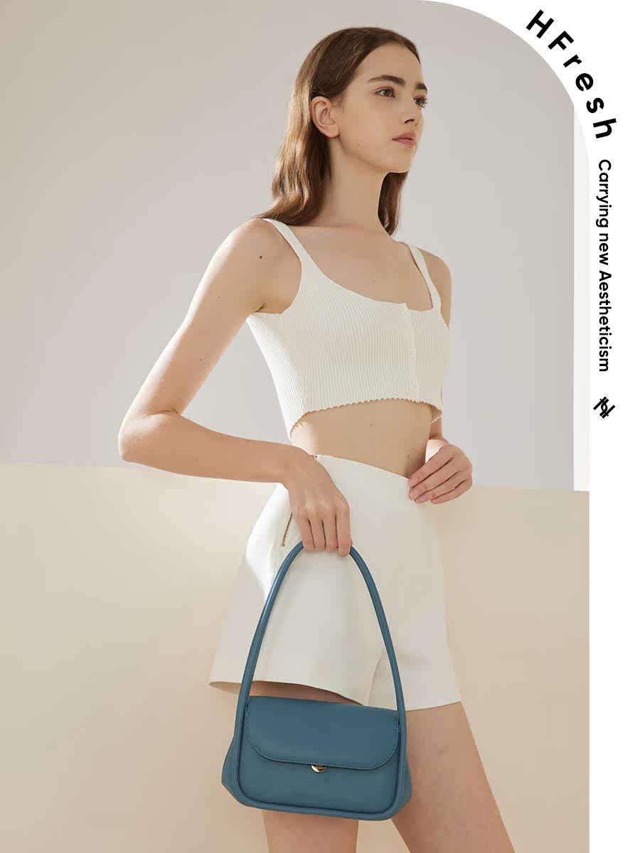 HFresh one-shoulder hand-held niche design French stick underarm bag women's bag new 2021 white handbag bag