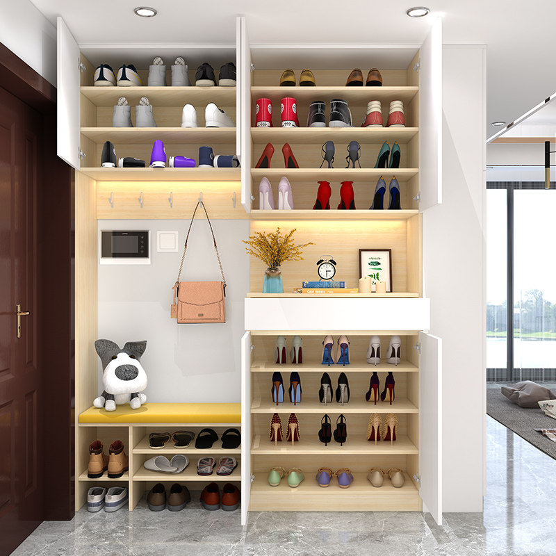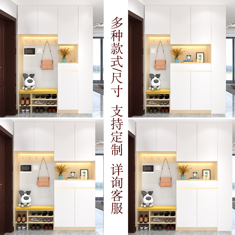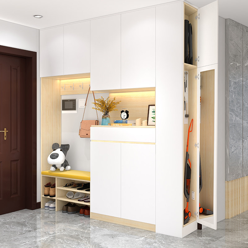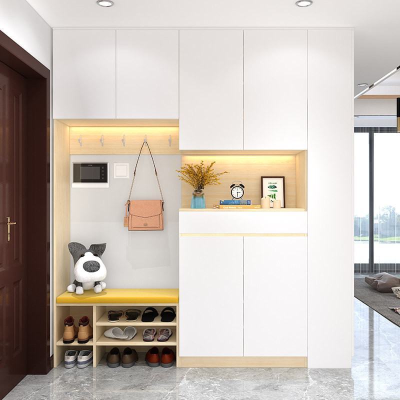 Entry shoe cabinet and cloakroom integrated with hanger multi-functional entrance hall cabinet coat rack with mirror wear shoe stool
